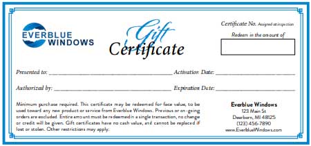 Minimum purchase required. This certificate may be redeemed for face value, to be used toward any new product or service from Skyline Exteriors. Previous or on-going orders are excluded. Entire amount must be redeemed in a single transaction, no change or credit will be given. Gift certificates have no cash value, and cannot be replaced if lost or stolen. Other restrictions may apply